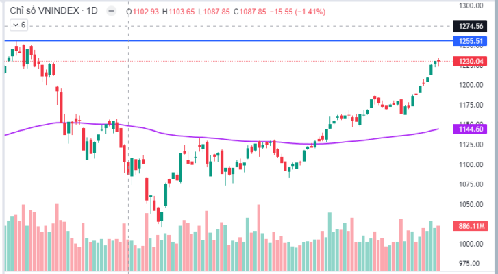 Thị trường tiếp tục xu thế tăng giá. Khối NĐT ngoại, khối NĐT tổ chức trong nước bán ròng, chỉ khối NĐT cá nhân mua ròng. Thị trường phát đi dấu hiệu có thể điều chỉnh ngắn. Vì vậy, chúng ta tiếp tục nắm giữ vị thế đầu tư dài hạn. Đối với giao dịch trading ngắn hạn siết chặt quản trị rủi ro đối với các giao dịch vi phạm nguyên tắc, Các giao dịch có lợi nhuận giá về vúng cản thực hiện chốt lời một phần hoặc toàn bộ chờ đợi thị trương tạo điểm mua mới.