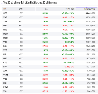 • Top cổ phiếu được bán ròng gồm STB, MBB, MWG, PC1, ACB, HPG, TPB, VIC, PNJ, VNM.