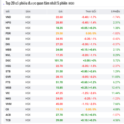 • TOP cổ phiếu NĐT quan tâm nhiều nhất