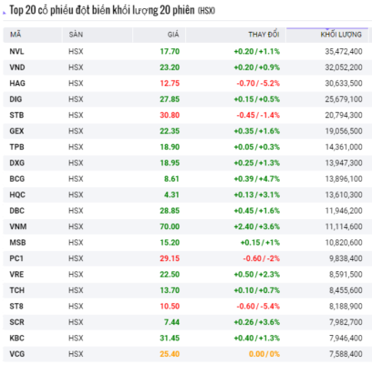 • TOP cổ phiếu đột biến khối lượng