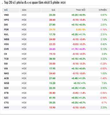 • TOP cổ phiếu NĐT quan tâm nhiều nhất